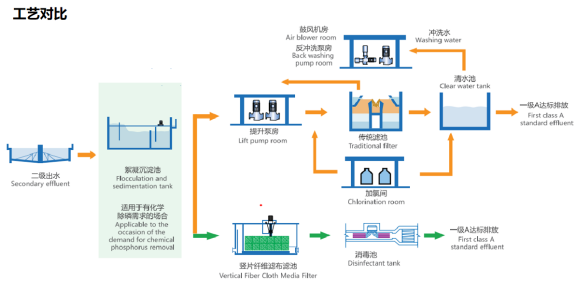 JPF 豎片纖維濾布濾池憑借其卓越的性能,在眾多領域得到了廣泛應用。工藝應用于沉淀,澄清,氣浮工藝后的過濾:無論是城市污水處理廠的提標改造,還是工業廢水的深度處理;無論是大型市政污水處理項目,還是小型村鎮式污水處理,無論是原水處理,還是地表水凈化,無論是膜工藝前處理還是循環冷卻水處理,JPF 豎片纖維濾布濾池都能大顯身手,為各類污水的凈化處理提供可靠保障。