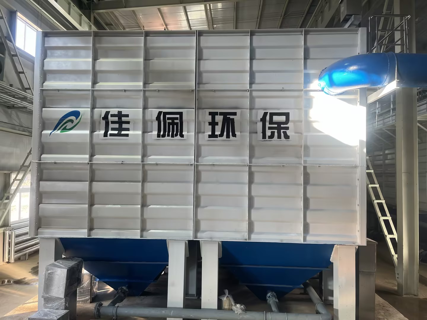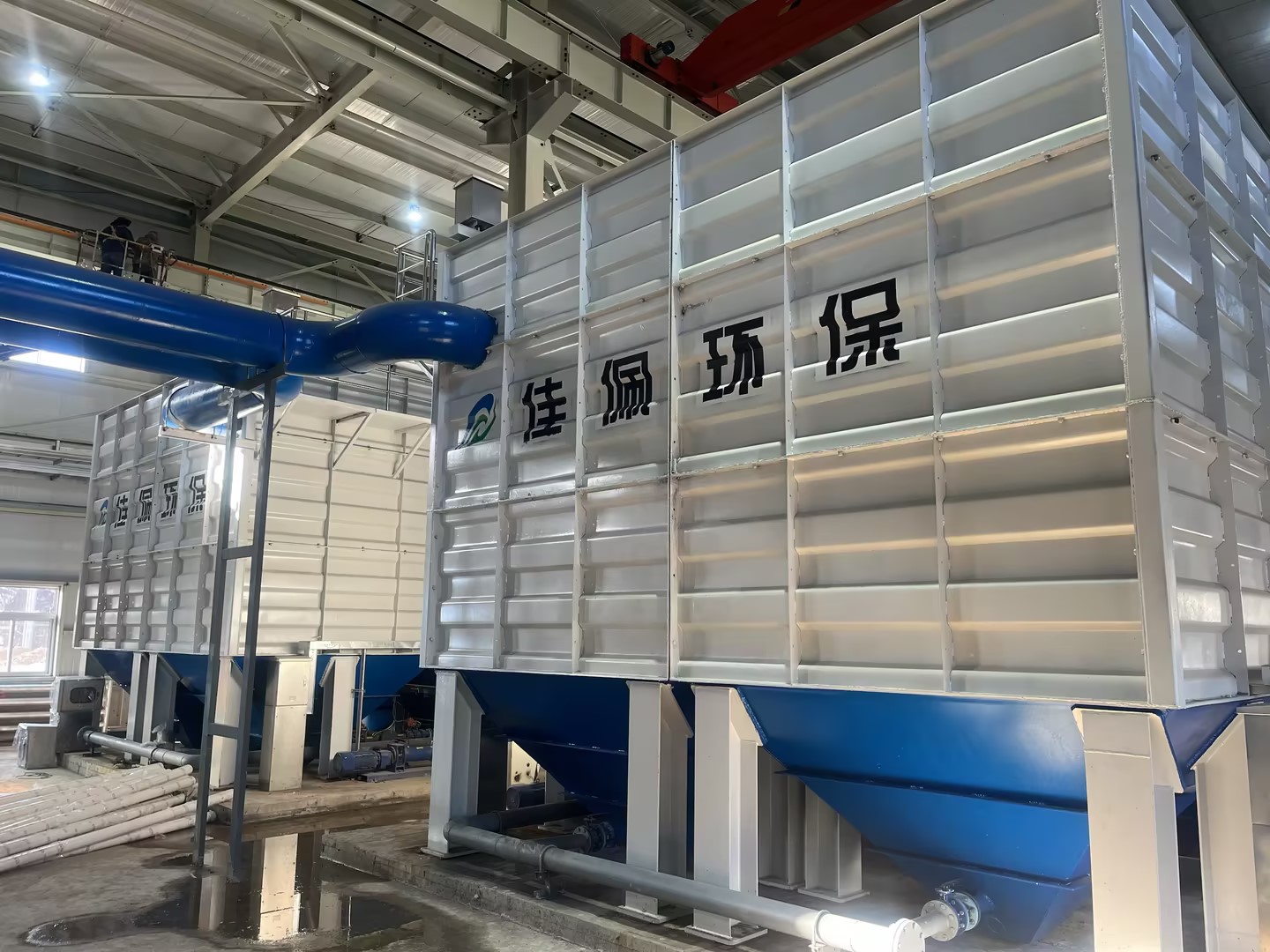 該系統由混凝區、絮凝區、預沉區和斜管沉淀池四部分組成,最大處理能力可達每天23040立方米,